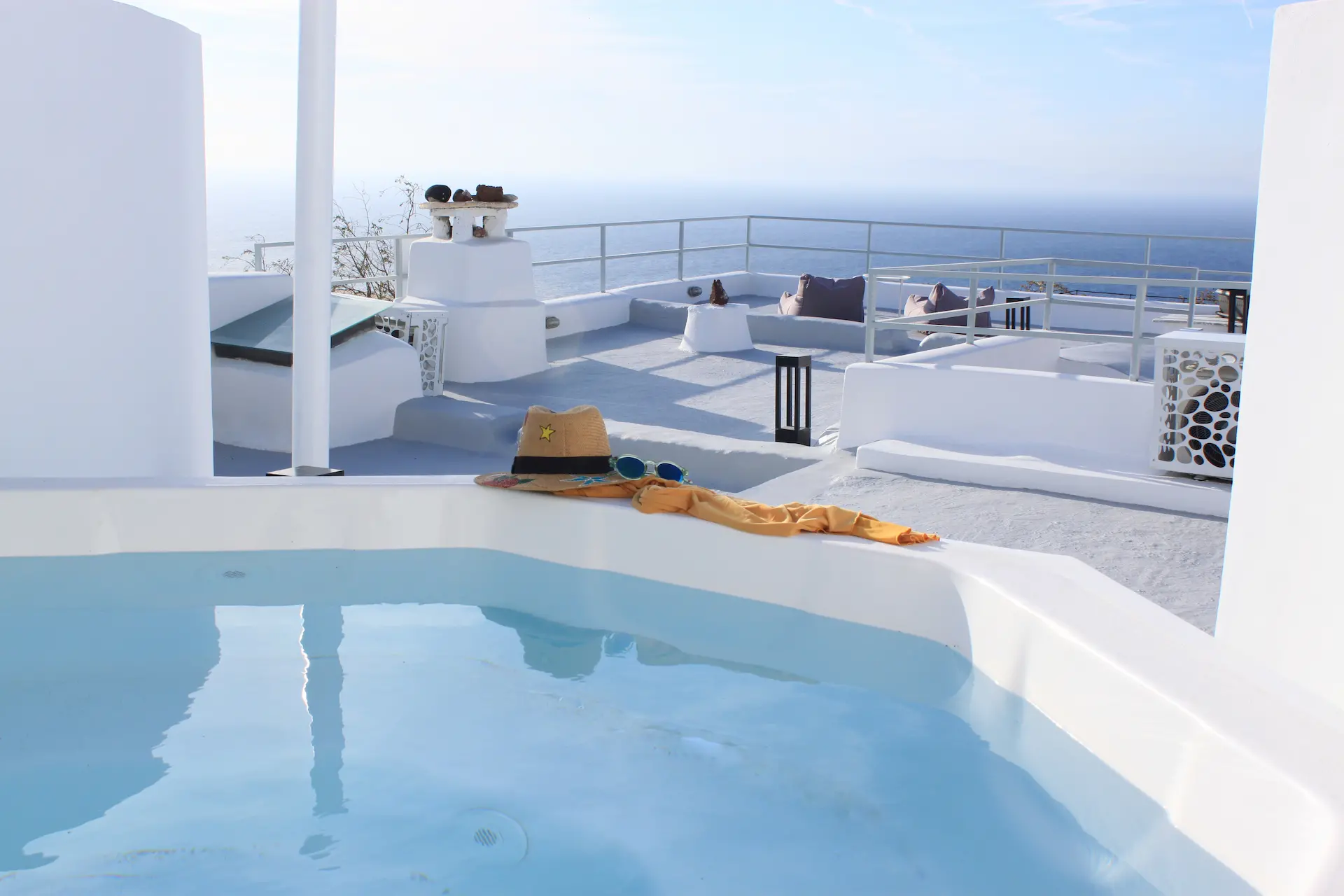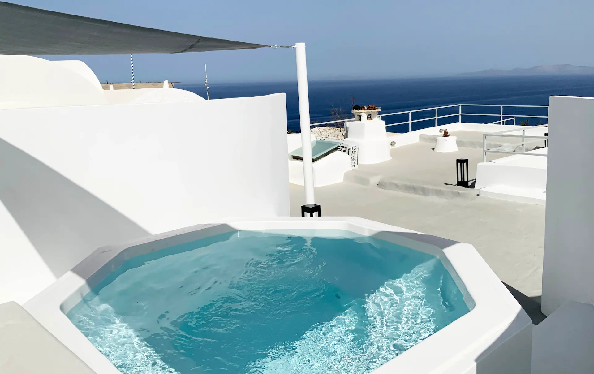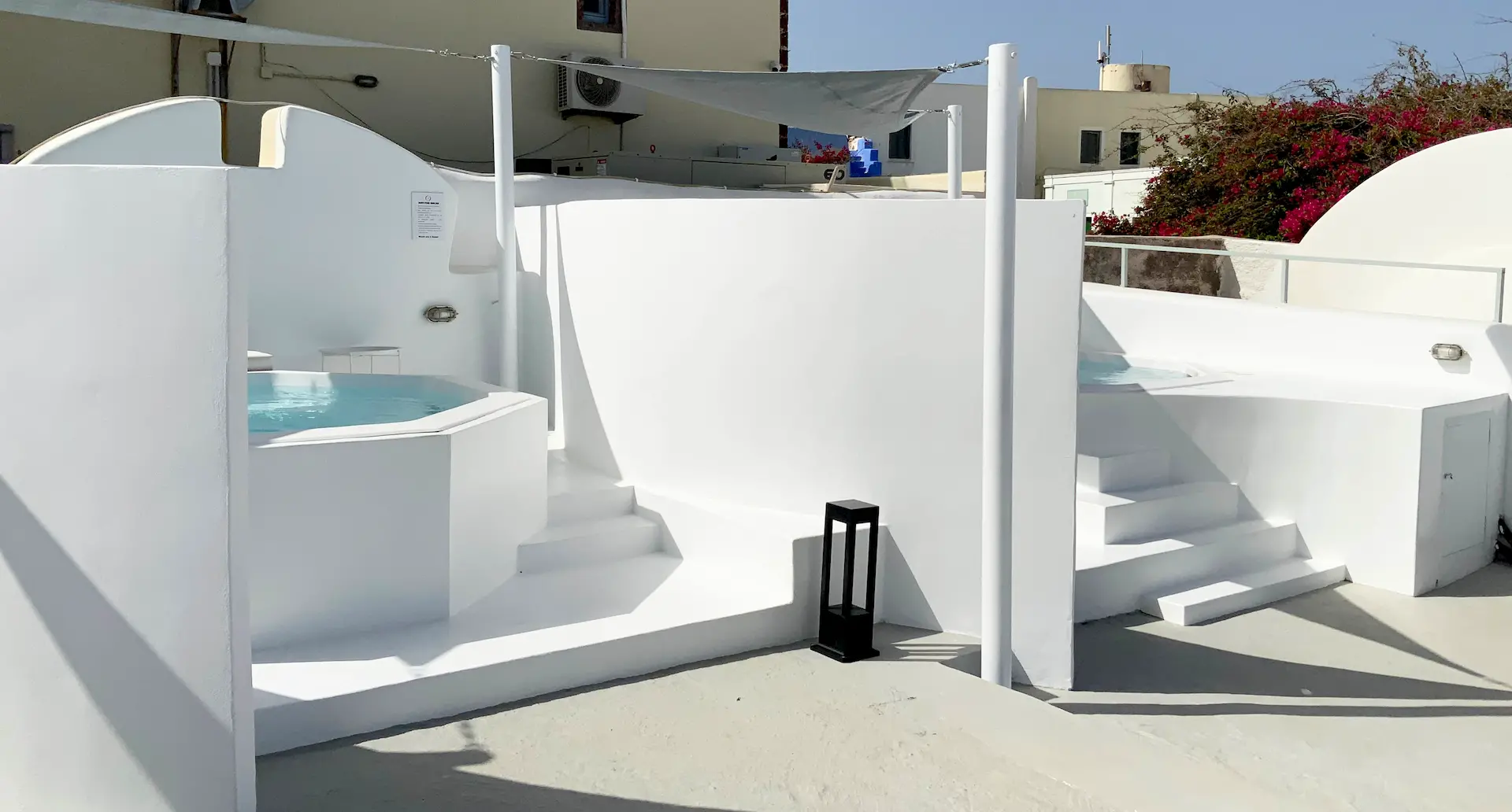 Το στούντιο έχει άμεση πρόσβαση σε εσωτερική βεράντα και οι επισκέπτες μπορούν να επωφεληθούν από την αυλή της οροφής με την εκπληκτική θέα στο μυστικιστικό ηλιοβασίλεμα της Σαντορίνης. Στους επισκέπτες μας, διατίθενται προϊόντα καλωσορίσματος, δωρεάν προϊόντα περιποίησης καθώς και μπουρνούζια.