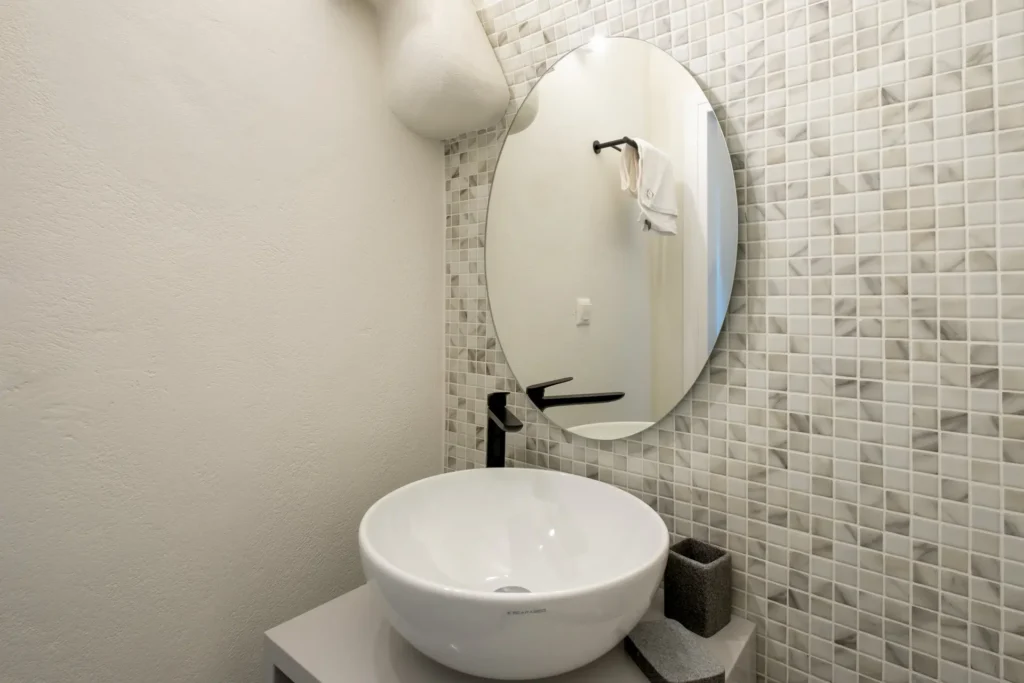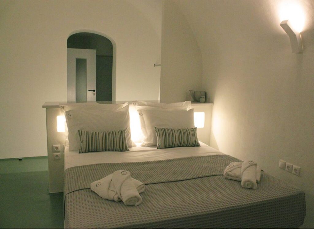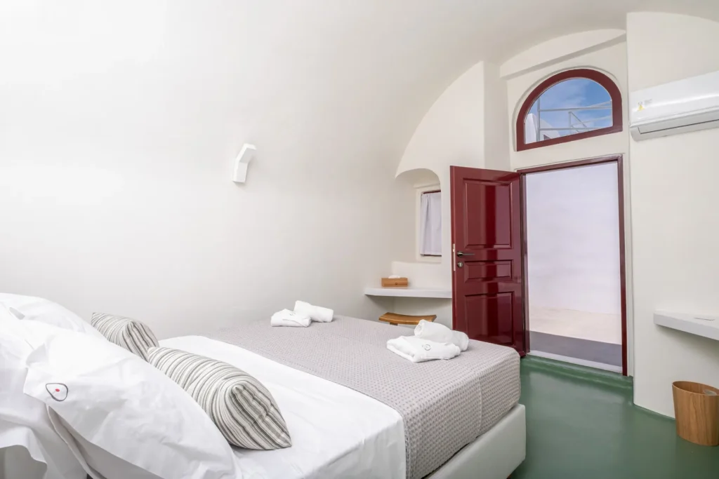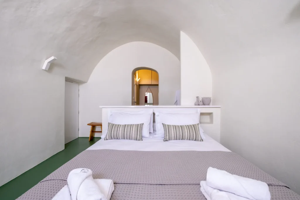 KAMARIKO cave studio is a spacious and luxurious double studio, spanning 25 sqm. It features a queen-size bed that can also be separated into twin beds, a walk-in closet, and a flat-screen Smart TV.
